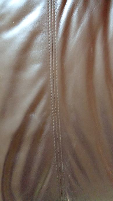 Mjere su : dužina 260 cm, lijevi dio dubina 200 cm, desni dio širina (dubina) 100 cm, dubina sjedala 75 cm, visina naslona 30 cm, visina od poda 70 cm. Boja čokolade (smeđa)