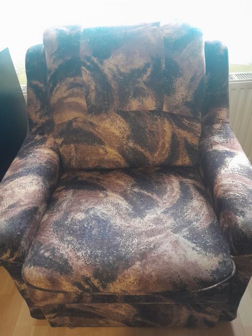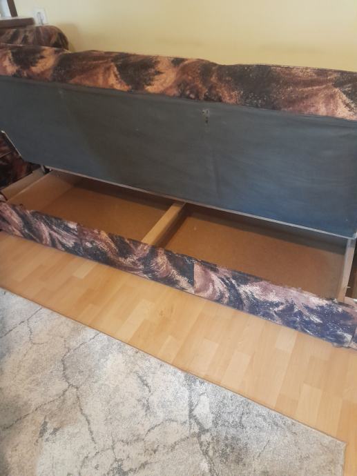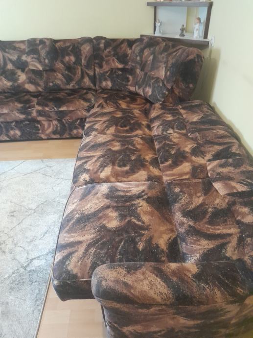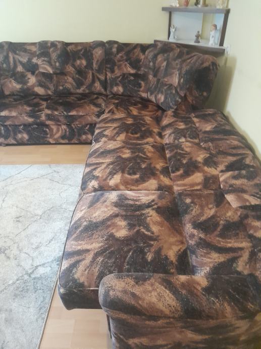 Kutna garnitura na razvlačenje,286×230,sa ležajem i prostorom za pohranu i fotelja,sve u jako dobrom stanju bez oštecenja