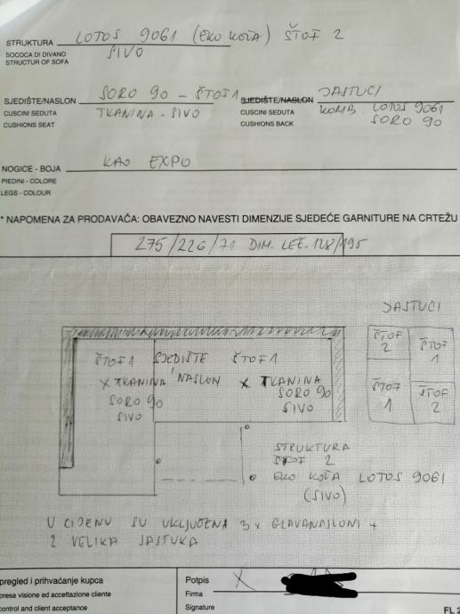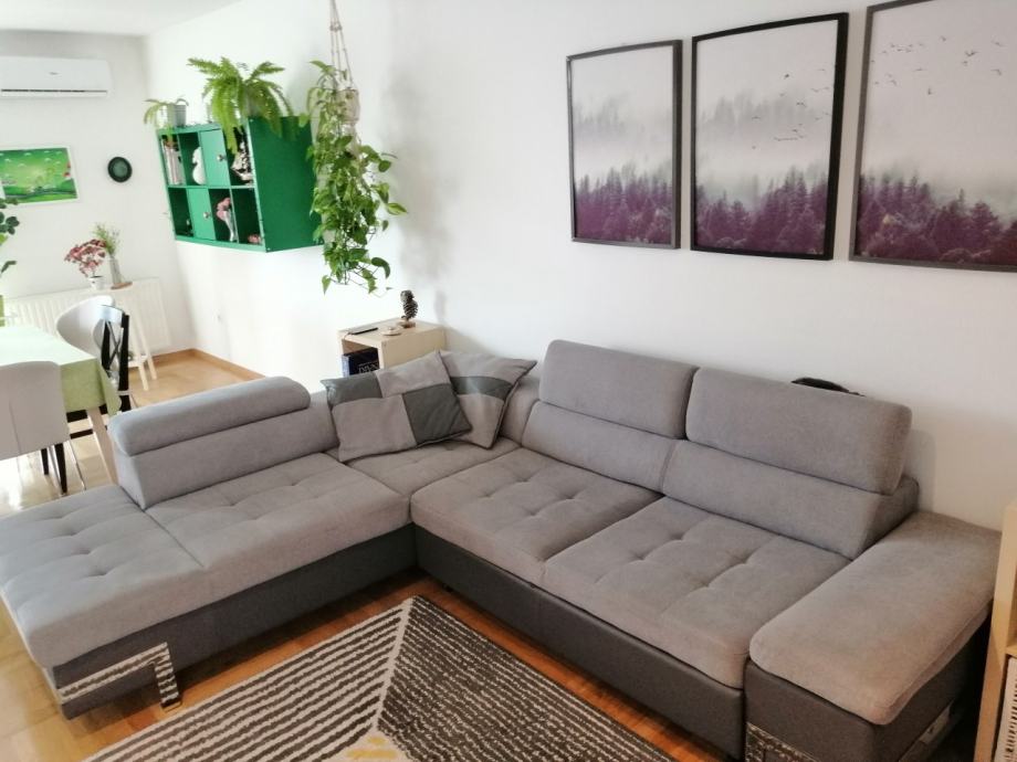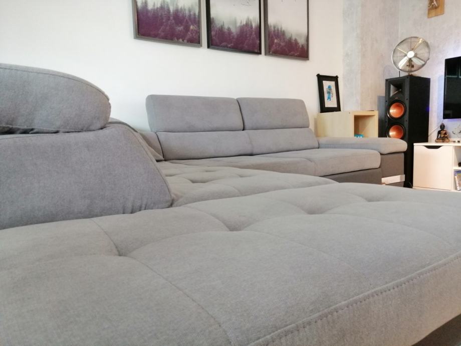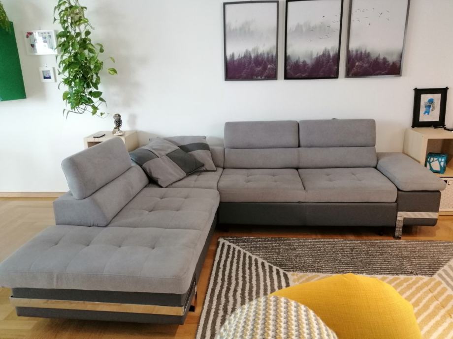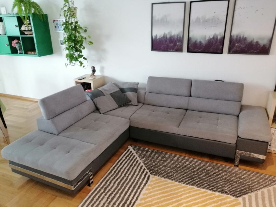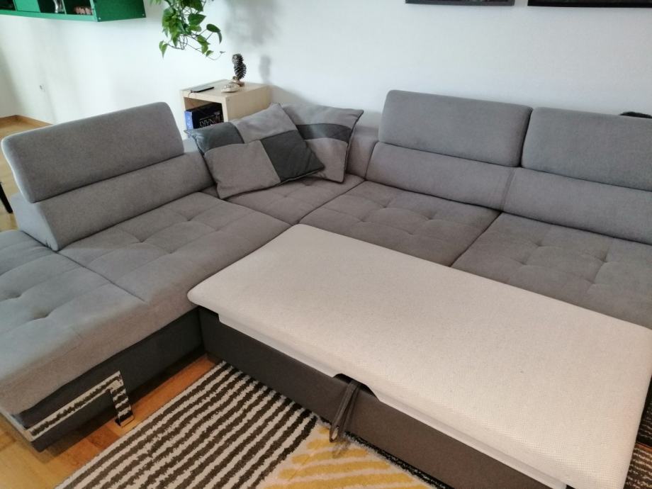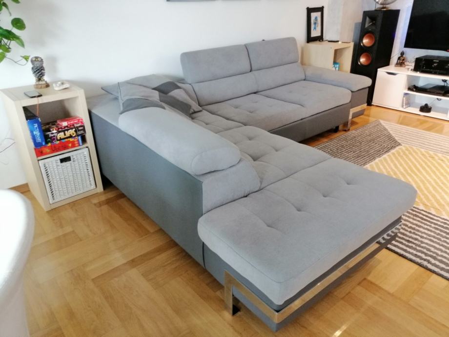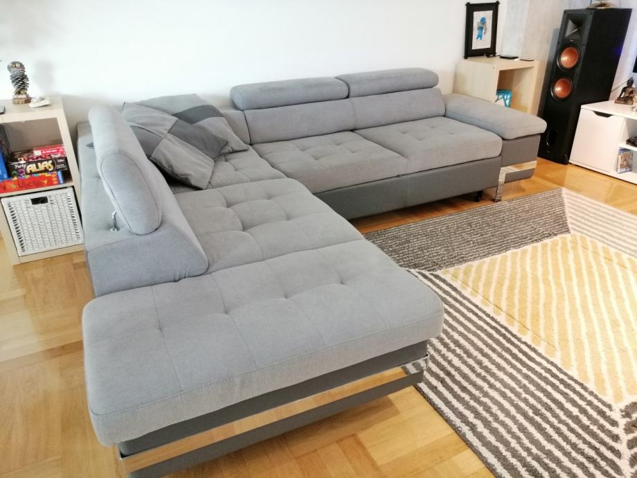 Prodajem kutnu garnituru na razvlačenje, odlično uščuvana, kupljena u Emmezeti krajem 2016, isporučena je u siječnju 2017.godine te je od tada korištena u domu bez djece. U stanu se ne puši. Garnitura je bez mrlja i slično. Prodaje se zbog selidbe. Plaćena 7000kn. Dimenzije 275x226x71cm. Dimenzije ležaja 128x195cm. Nasloni za glavu se dižu i spuštaju. Uz garnituru 2 jastuka dimenzija 50x50cm.