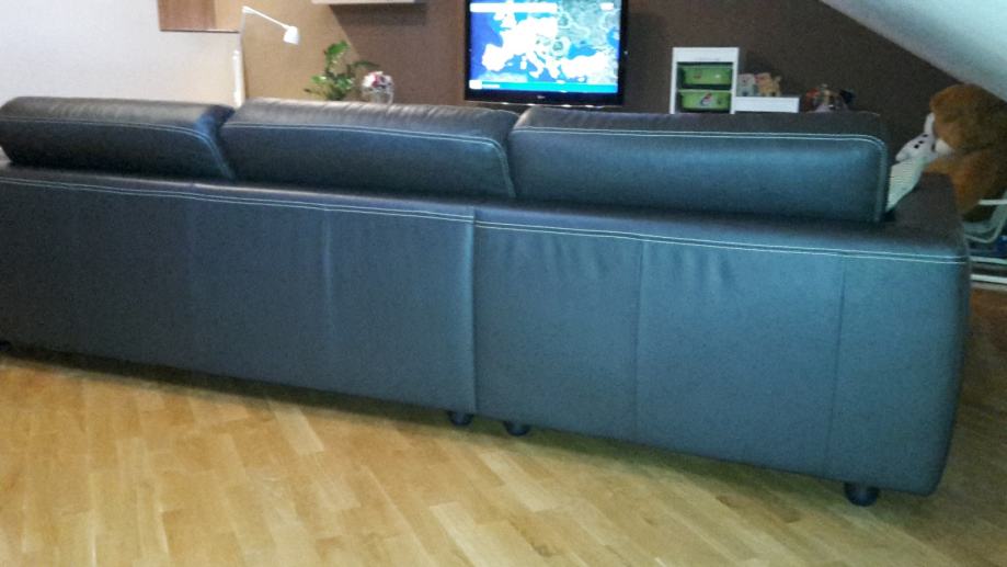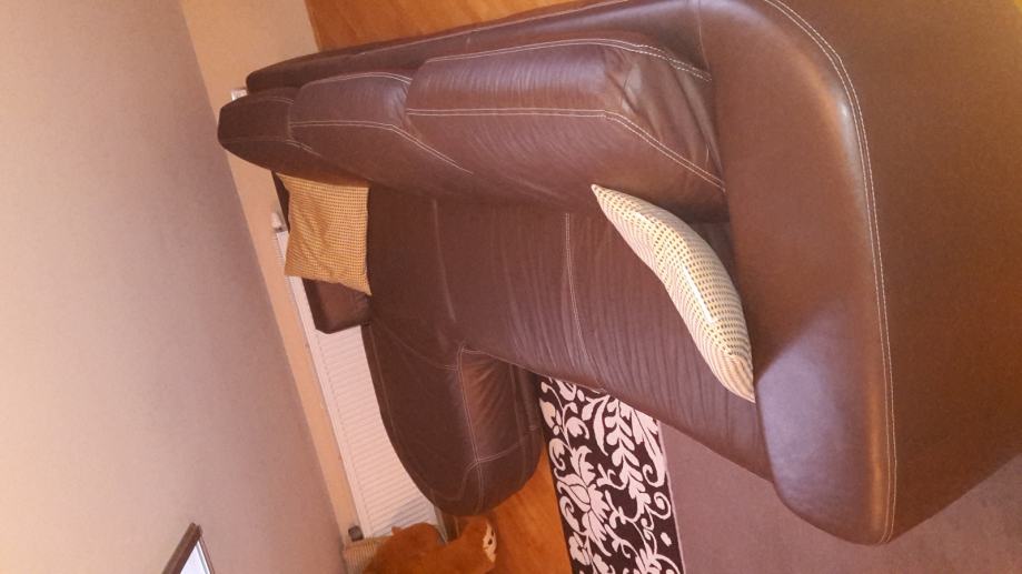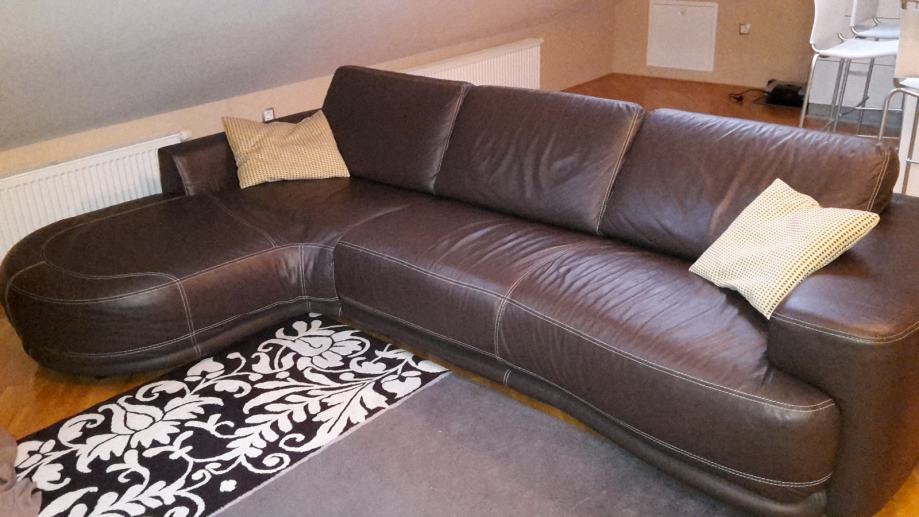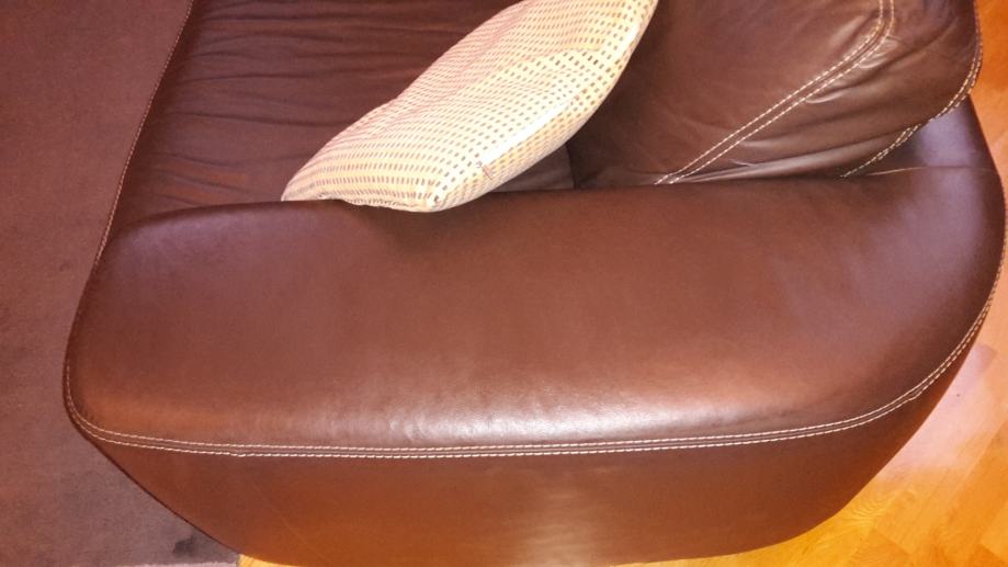 Prodajem korištenu kutnu garnituru talijanske proizvodnje, visoko kvalitetna, prava koža (smeđa sa prošivom od bijelog konca)