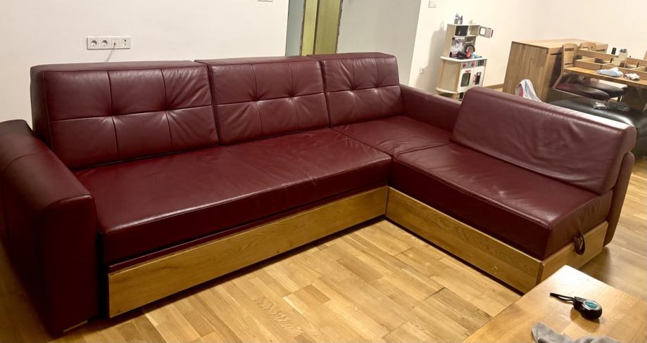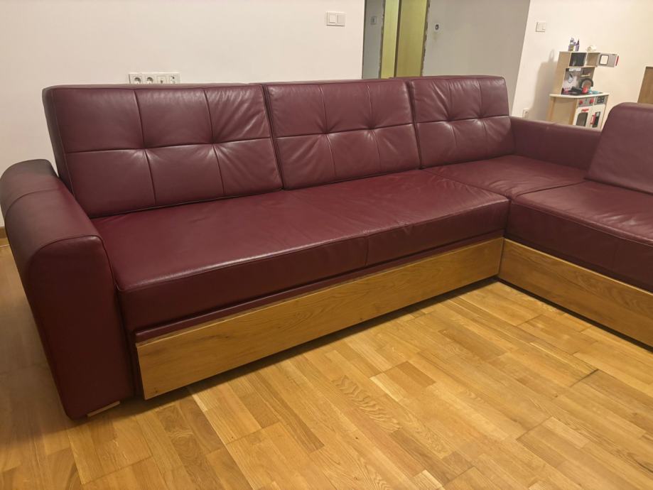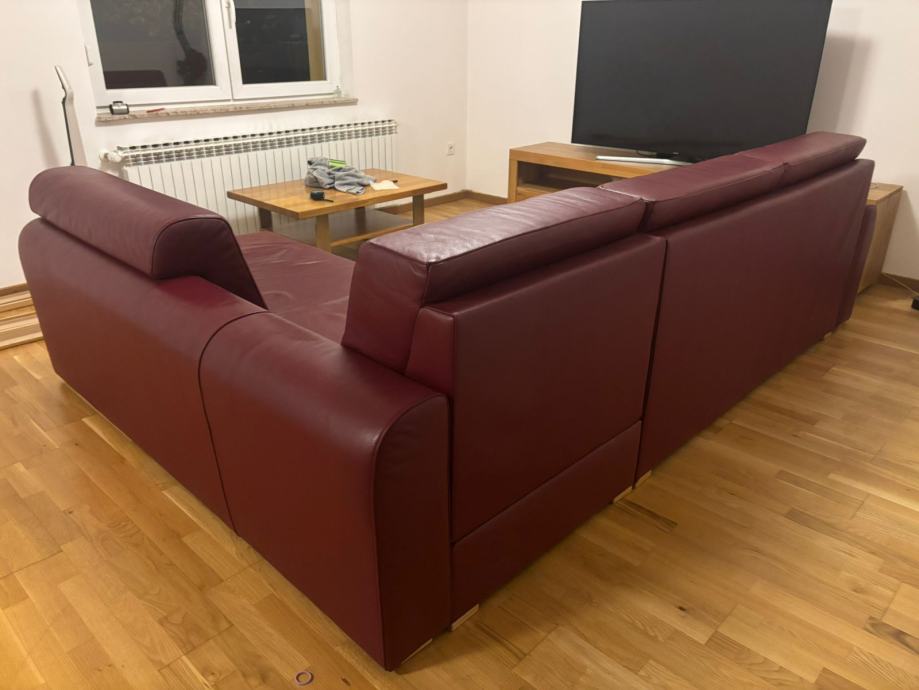 Prodajem kvalitetnu kožnu kutnu garnituru sa podnožjem od slavonskog hrasta od vrhunske marke Spin Valis, garnitura Mango modernih ravnih linija kao nova, izuzetno očuvana, korištena 3 godine.