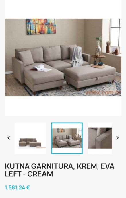 *NOVO*Kutna garnitura sa tabureom koja se ne razvlači nego je tabure kao za ležaj dodatak dimenzije 225×150