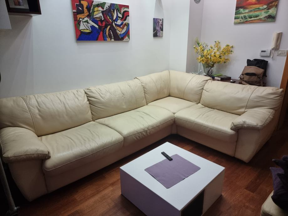Kutna garnitura 300x205, umjetna koža, u dobrom stanju. Može se razdvojit na dva dijela po 2m. Proizvođač Mobilar.
