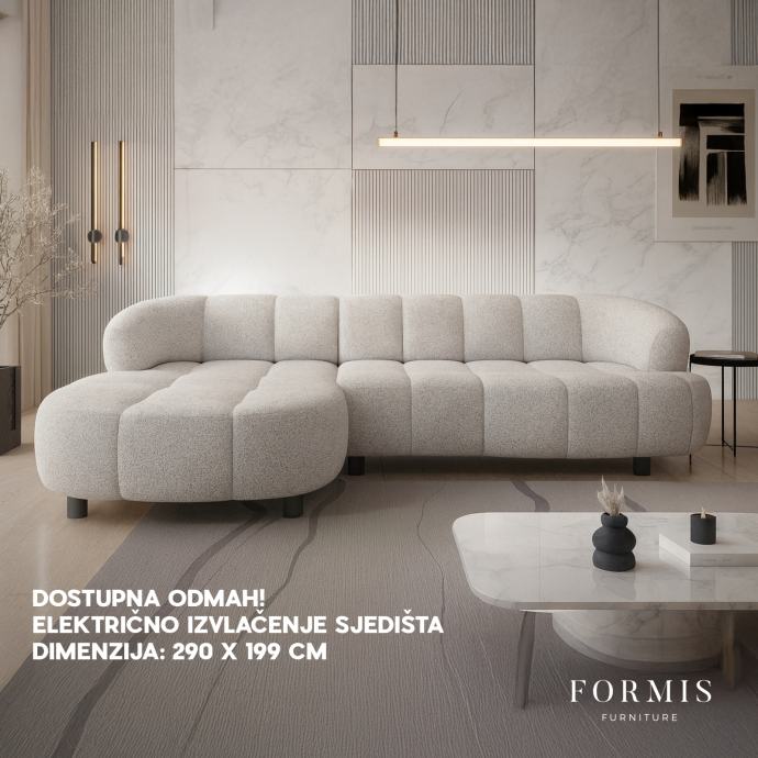 Prodaje se moderna kutna garnitura VELPA S s električnim izvlačenjem ležaja – idealna za dnevne boravke u kojima trebate i udoban kauč i dodatni ležaj.
