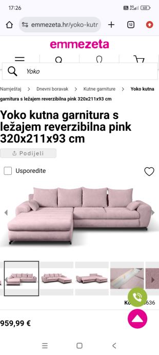 Prodaje se nova kutna garnitura – samo je otpakirana i nije u potpunosti sastavljena. Uz oglas je priložena fotografija, a detaljnije informacije i dodatne slike možete pogledati na web stranici Emmezete, gdje je garnitura i kupljena. Odabrana je siva boja.