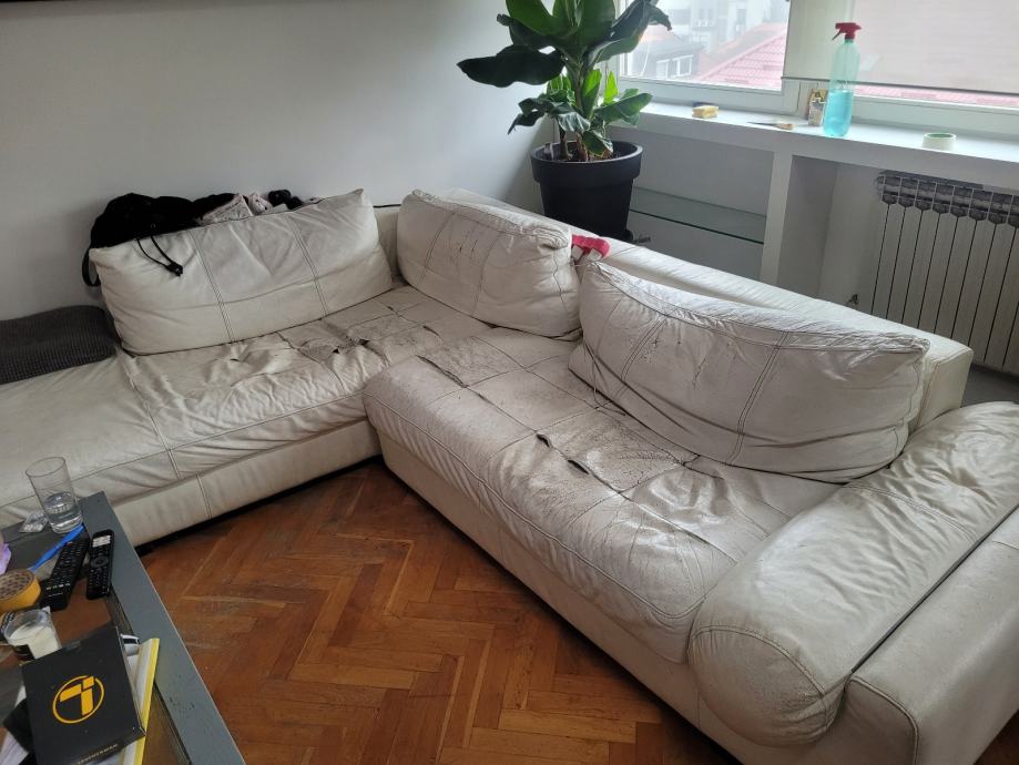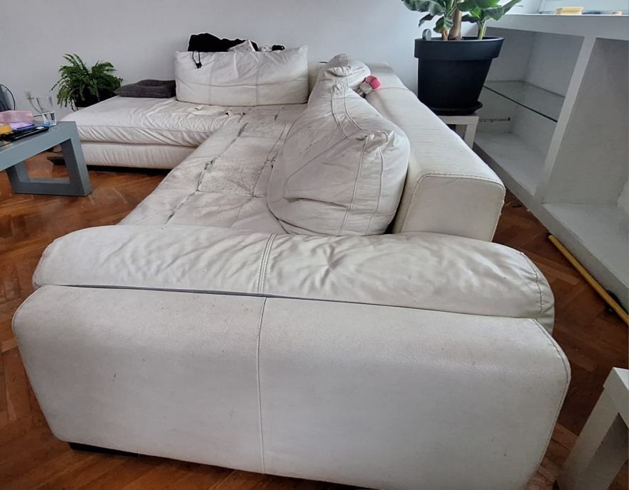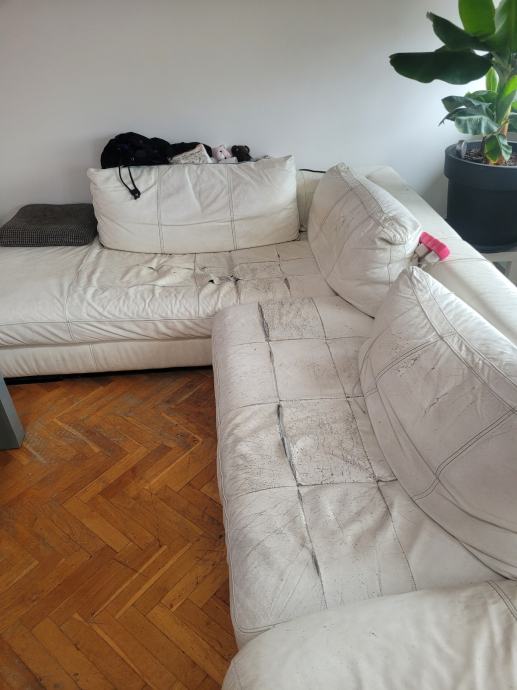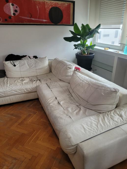 Kutna kožna garnitura, u funkcionalnom je stanju al bi se trebala zamijenit kožna presvlaka.