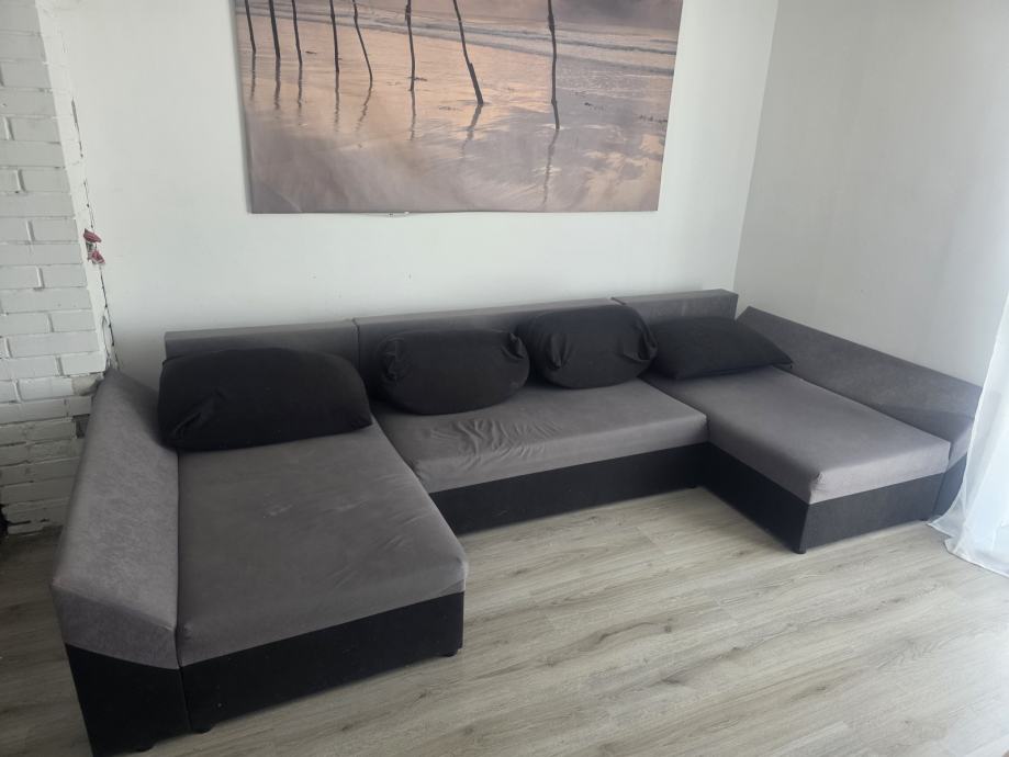 Prodajem udobnu i praktičnu kutnu garnituru u sivo-crnoj kombinaciji. Dimenzije su 3,20 m x 1,40 m. Garnitura je očuvana, idealna za dnevni boravak, prostrana i pogodna za odmor i druženje.
