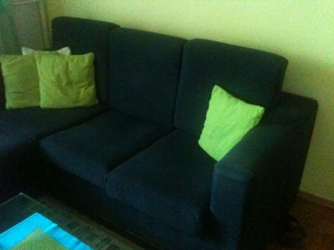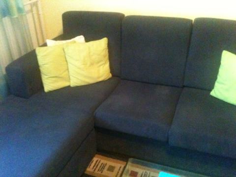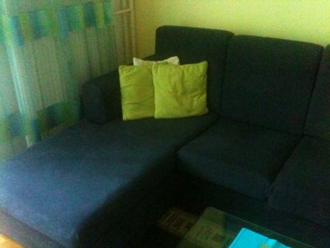 Tamno plava, stara 4 g., nije na razvlačenje, kupljena u Semeraru za 3000 kn. Jako dobro očuvana i vrlo udobna.