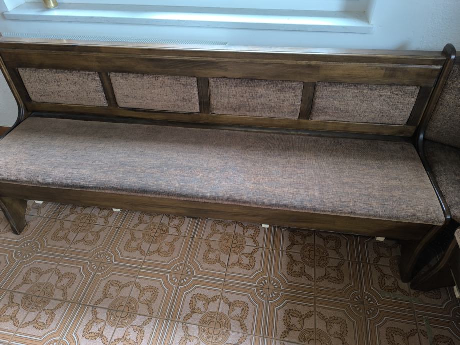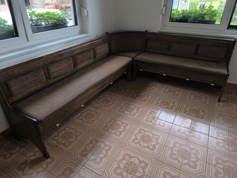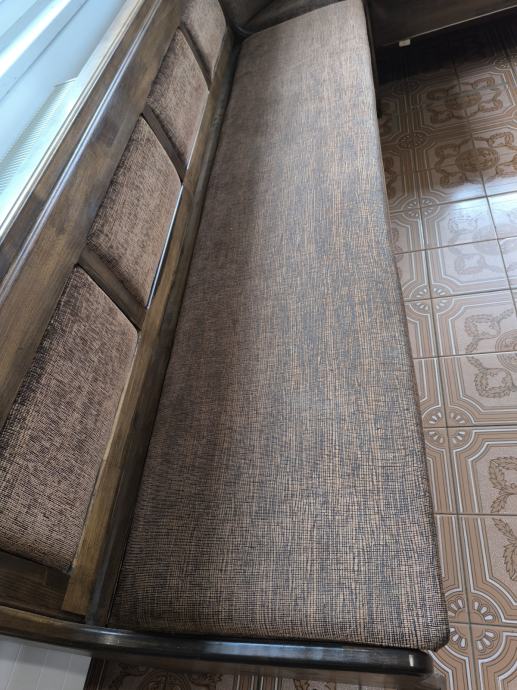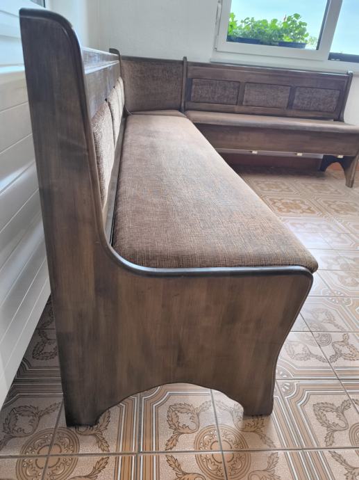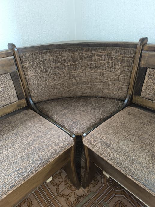 Vanjske dimenzije kutne garniture su 250x200 cm, sjedišta su širine cca 45cm (vanjske širine 55cm), ispod njih su dva spremišta.