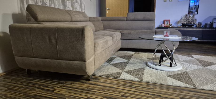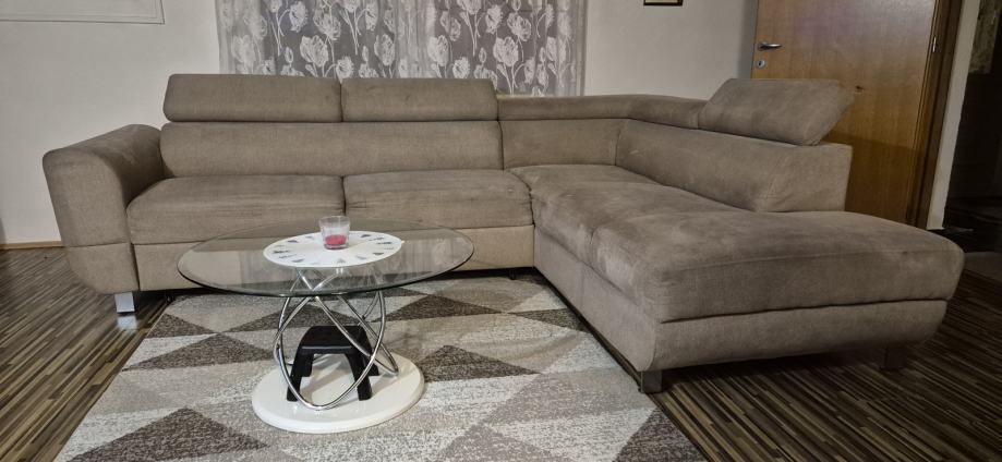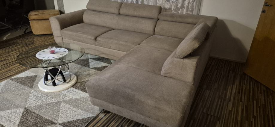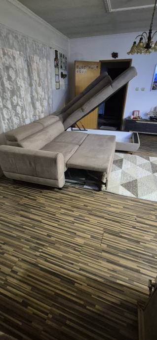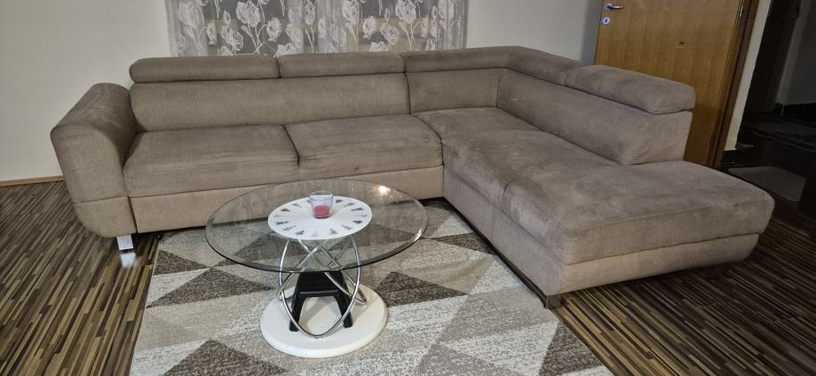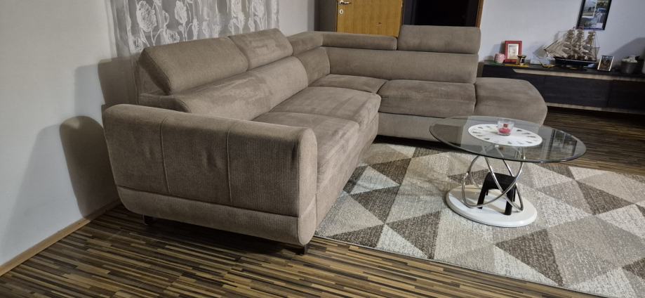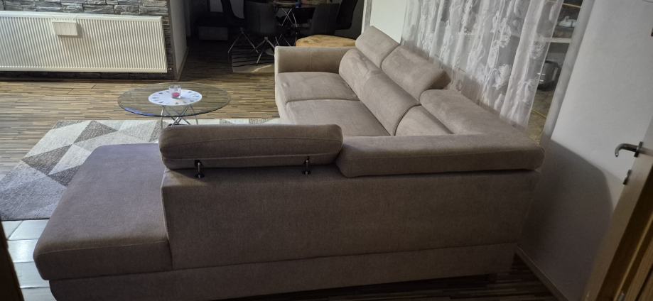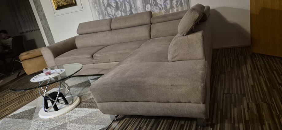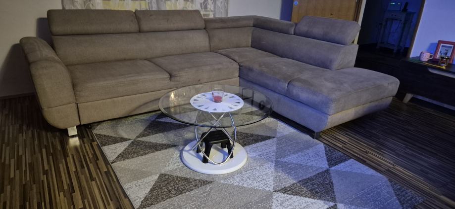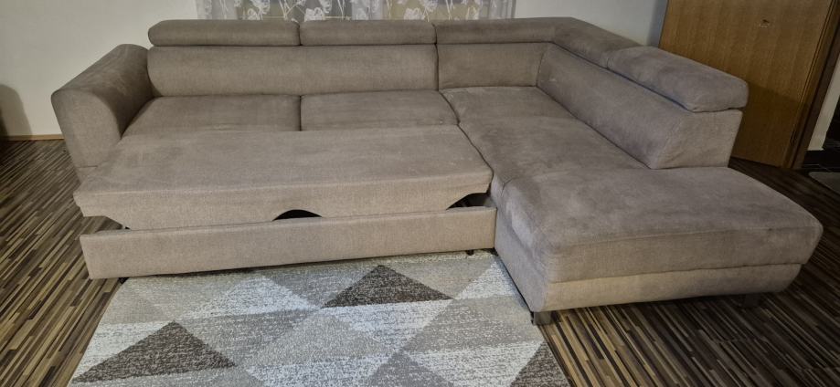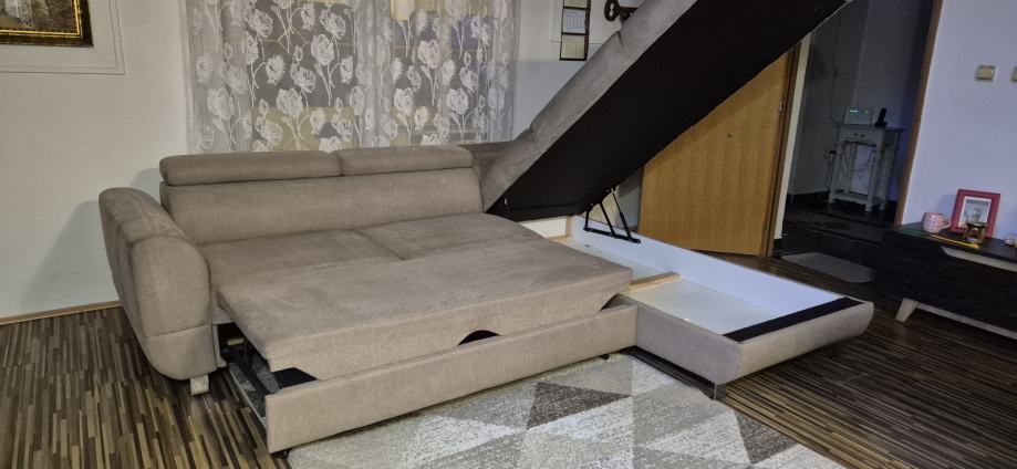 Prodaje se moderna kutna garnitura, u super stanju, kemijski oprana, stara godinu dana. Bez oštećenja, razvlaci se u ležaj za spavanje I ima veliki prostor za pohranu. Kvalitetnog materijala, pomičnih naslona za glavu.