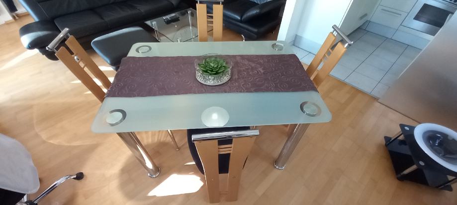 - kuhinjski stakleni stol dimenzije 1300 x 900 mm sa 6 stolica