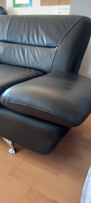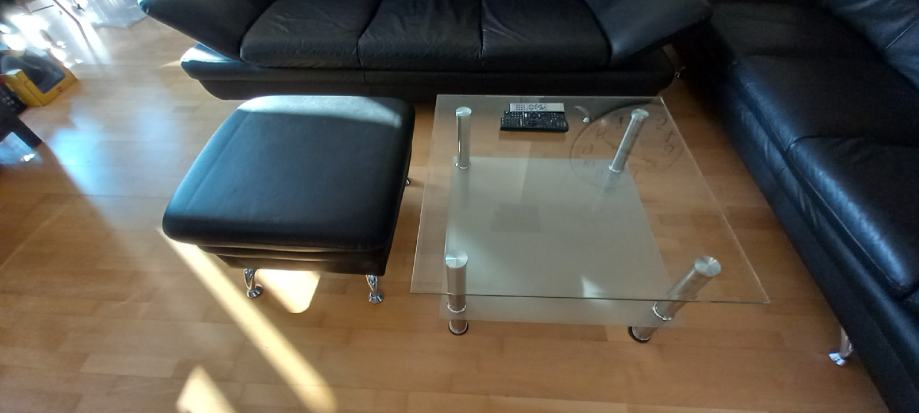 - sjedeća garnitura u vrlo dobrom neoštećenom stanju od prave kože za primaću sobu koja se sastoji od dvije klupe (nasloni za glavu se na oba kraja dadu podići/ spustiti) dužine cca. 2200 mm x 900 mm + kožni tabure (četvrtasta kožna klupčica za noge) dimenzije cca. 650 x 650 mm + stakleni stol dimenzije 800 x 800 mm