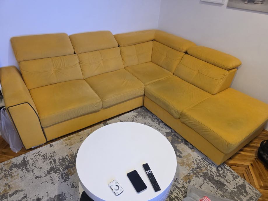 Prodajem kutnu garnituru žute boje,garnitura je stara 4.godine u ispravnom je stanju.Pogledaj slike stanje.