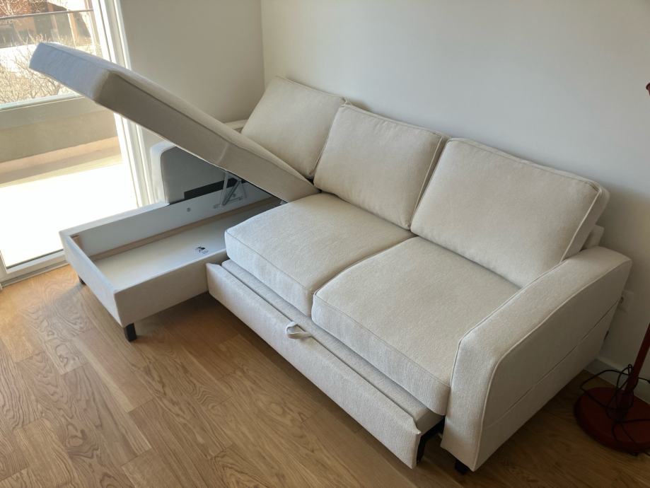 Kauč se lako sastavi, meni i ocu je trebalo 2 minute. Ima dva dijela i nogice. Imam lift i kauč stane u lift. Treba vam samo kombi jer naravno u auto ne stane.