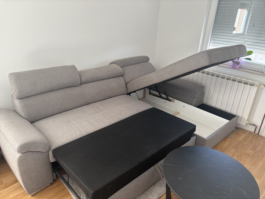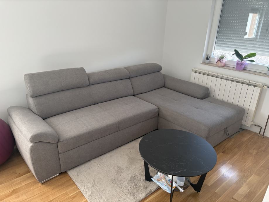 Prodajem Golino kutnu garnituru s ležajem, sive boje desni kut, dimenzije su 277x174x90 cm.