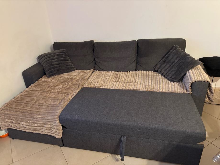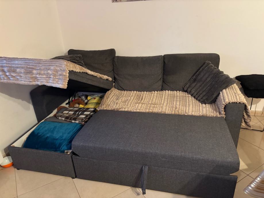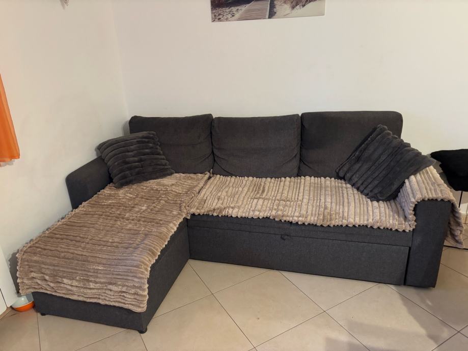 Prodajem kutnu garnituru sa krevetom na razvlačenje i prostorom za posteljinu u super stanju očuvan . Fiksna cijena 250 € .