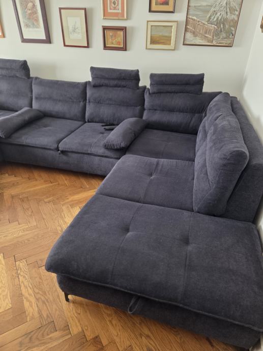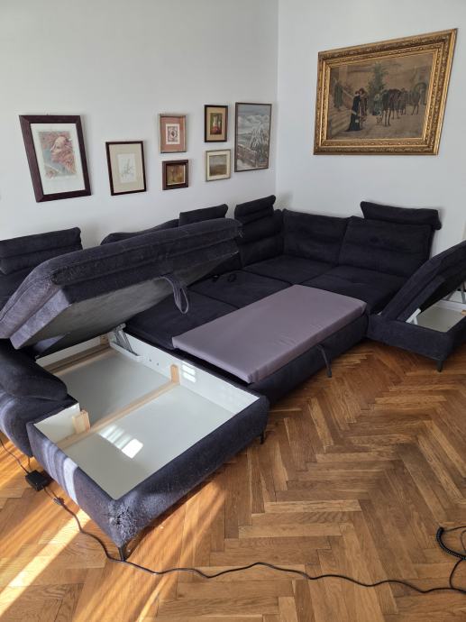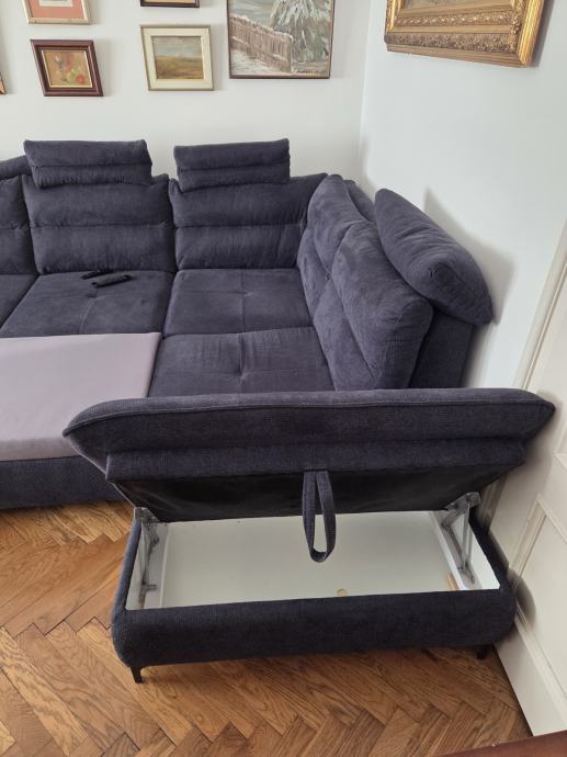 Prodajem kutnu garnituru na razvlačenje i 2 spremnika, te stolić, u potpunosti ispravno, manje oštećenje presvlake na jednom mjestu.