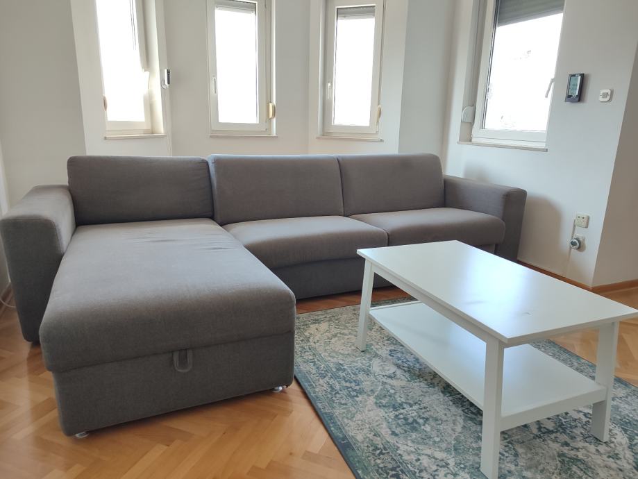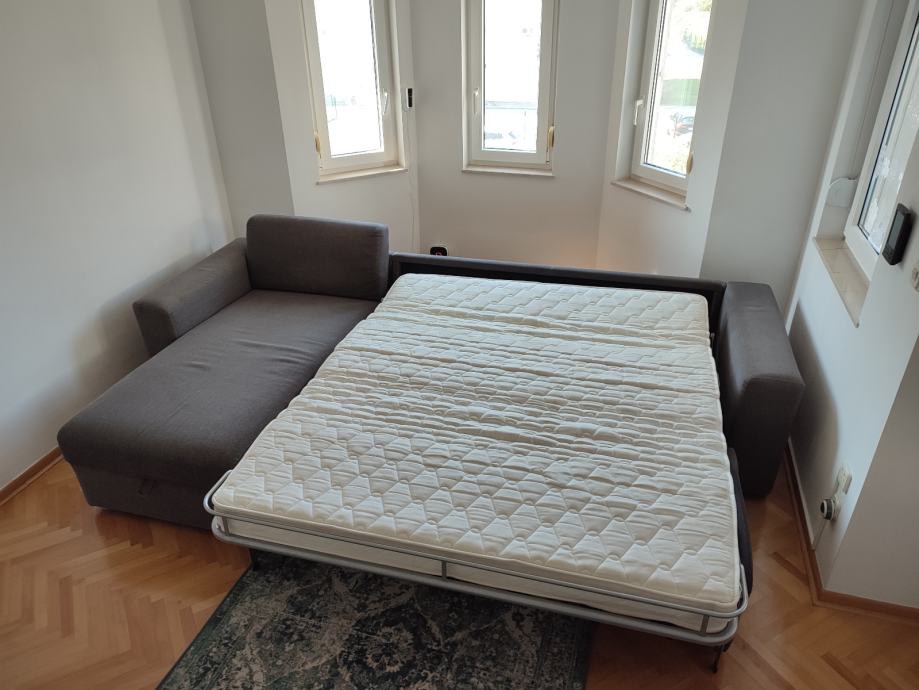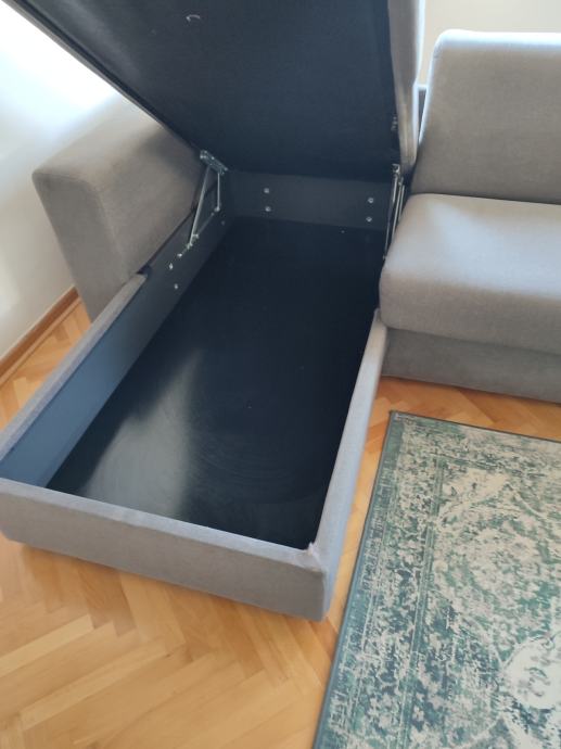 Garnitura ima spremu ispod damskog ležaja i vrhunski mehanizam izvlačenja ležaja s pravim madracem.