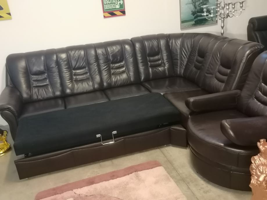 RASTEGLJIVA VISOKOKVALITETNA KOŽNA kutna/kotna/ugaona garnitura model "HELSINGBORG" kupljena u ŠVEDSKOJ 28.05.2024. i plaćena preko 6200 EUR (račun) !
