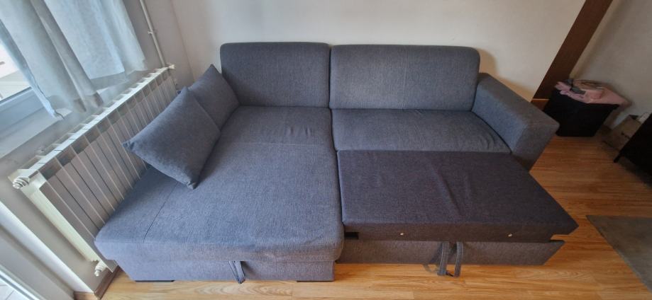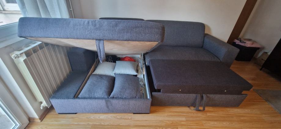 Prodajem rabljenu kutnu garnituru sa pomoćnim ležajem i podiznim spremištem.Garnitura je u ispravnom stanju kemijski čišćena prije godinu dana.