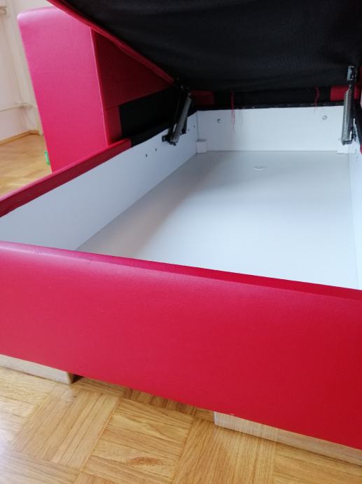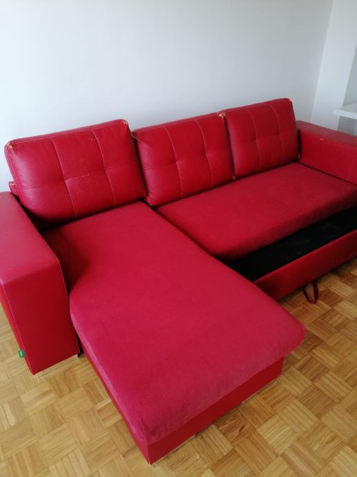 Kutna garnitura sa mogućnošću razvlačenja u položaj kreveta i spremnikom za odlaganje posteljine.