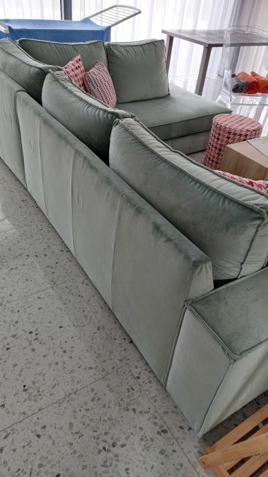 Dimenzije 210 x 200, dubina 95, visina 40, sve u cm.