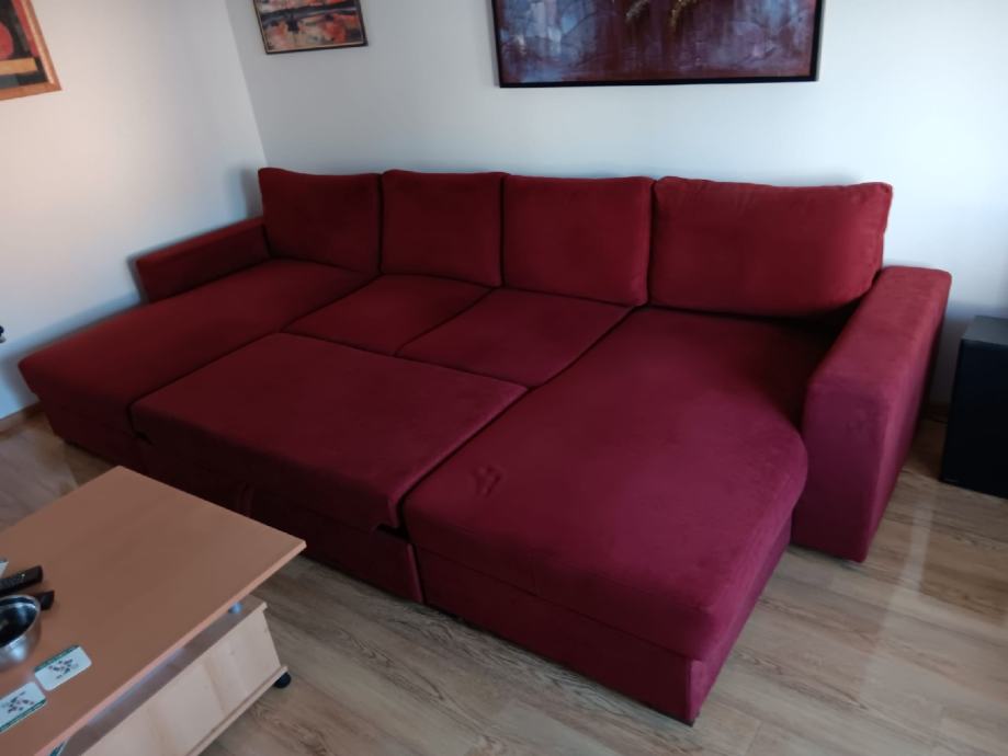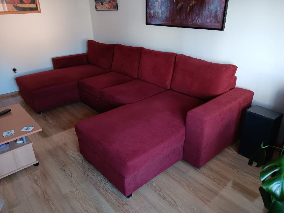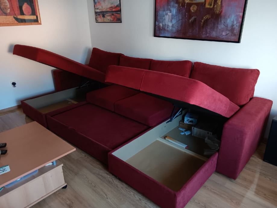 Sjedeća garnitura s pomoćnim ležajem i dva damska ležaja sa spremnicima za posteljinu, dimenzija 340×160, u odličnom stanju, prodajem.