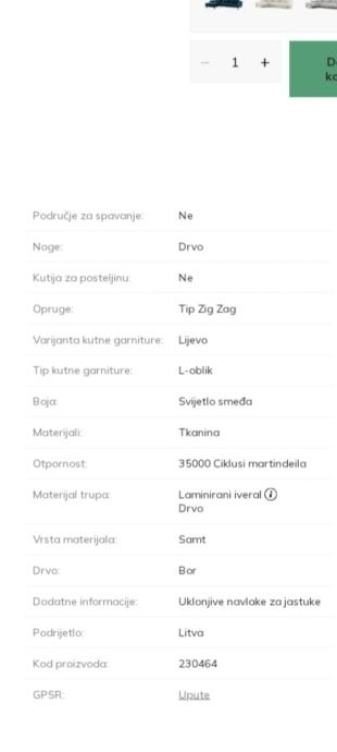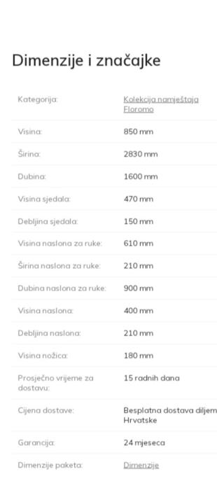 *NOVO*Sjedeća kutna garnitura dimenzije 283×160