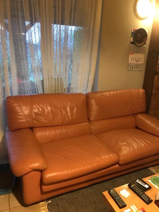 CIJENA NIJE FIKSNA !!!Dugo korištena garnitura 3+2+1, prava koža sjedeći dio i rukonasloni, a eko koža ostalo, vrlo očuvano, idealno za neki vikendicu ili sl.