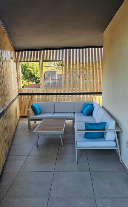 Set se sastoji od dva dvosjeda, 1 kutne fotelje, srednje fotelje i stolića. Ukrasni jastučići su uključeni u cijenu.