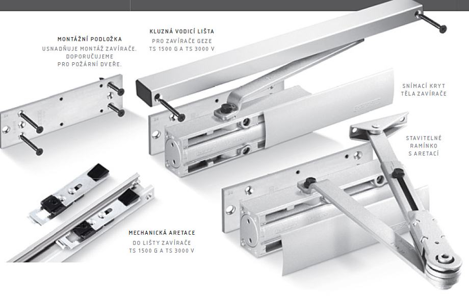 Geze TS 1500 s pričvsnom montažnom pločom i kliznom šinom (bez škara)