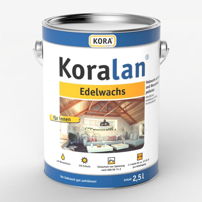Koralan Edelwachs prije primjene dobro promiješati. Štedljivo nanijeti kistom ili valjkom u smjeru vlakana, npr. kod profiliranog drva daska po daska. Koralan Edelwachs je gotov za upotrebu. Izgled površine i intenzitet boje mogu se pojedinačno mijenjati dodavanjem vode (najviše 10%). Sve se boje mogu međusobno miješati. Za postizanje posebno lijepih površina, lagano prebrusiti obrađene površine nakon približno 1-2 sata sušenja, finim brusnim papirom u smjeru vlakana i očistiti ih. Zatim nanijeti brzo drugi premaz. Vlaga drva ne smije prelaziti 15 %.