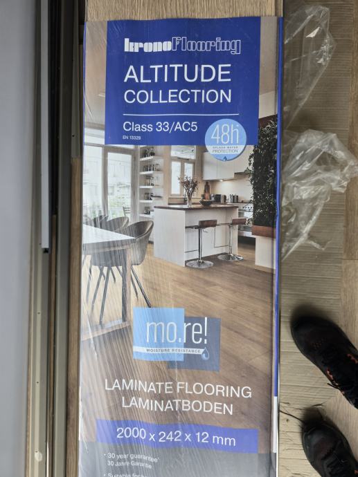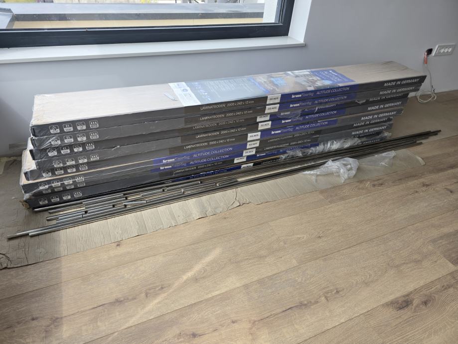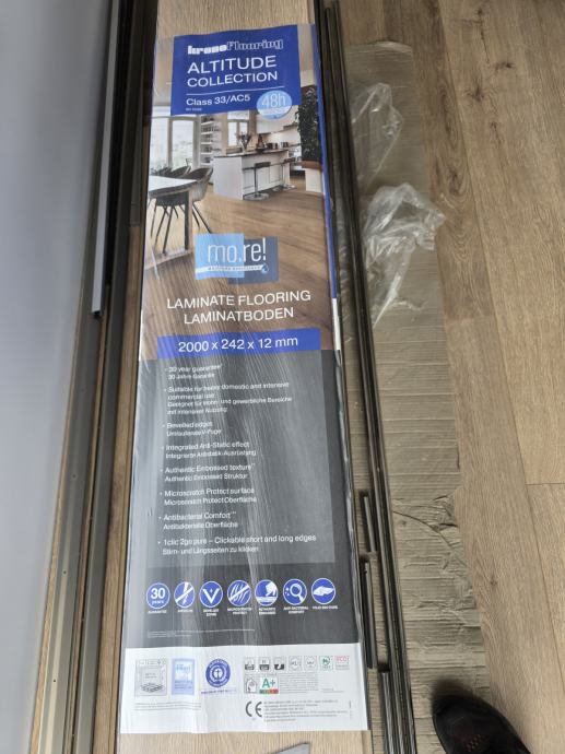 Prodajem novi vrhunski laminat Krono Floring, dugačka daska, cca. 15 m2, višak kod opremanja kuće zajedno s podlogom 3 mm - sve pogodno za podno grijanje.