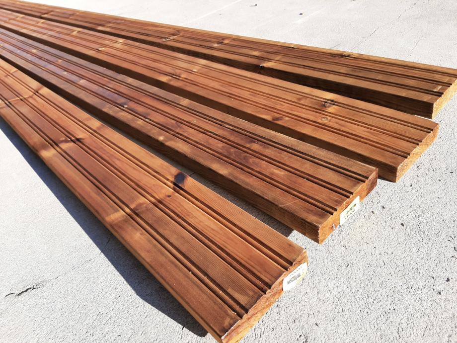 Pod za terasu od impregniranog bora u atraktivnoj smeđoj boji. Impregnacija dasaka pruža dodatnu izdržljivost i otpornost na vremenske uvjete, čineći ih savršenim izborom za različite namjene.