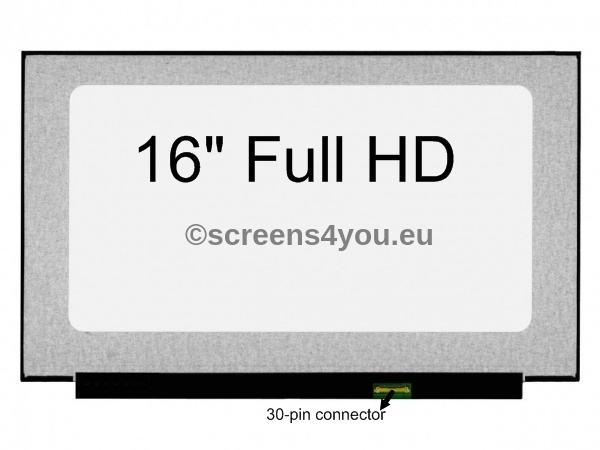 Ekran (kompatibilan između ostalog sa ChiMei Innolux N160JCE-ELL) je dijagonale 16" i slim LED tipa sa IPS matricom. Ekran ima rezoluciju 1920x1080 (Full HD). Konektor za priključivanje kabla na ekran je 30pinski. Ekran nema nosače.