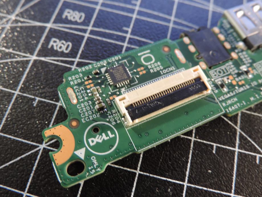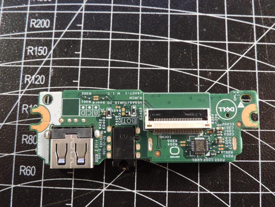 Na prodaju polovna I/O pločica (I/O Board - I/O Daughterboard) za Dell Inspiron 15 laptop. Izvađena iz funkcionalnog laptopa koji je rastavljen za prodaju u dijelovima. Svi konektori testirani i rade bez problema - garantirano. Posjeduje pukotinu pored utora za pričvršćivanje, testirano ne utječe na rad ili ugradnju (vidi slike).
