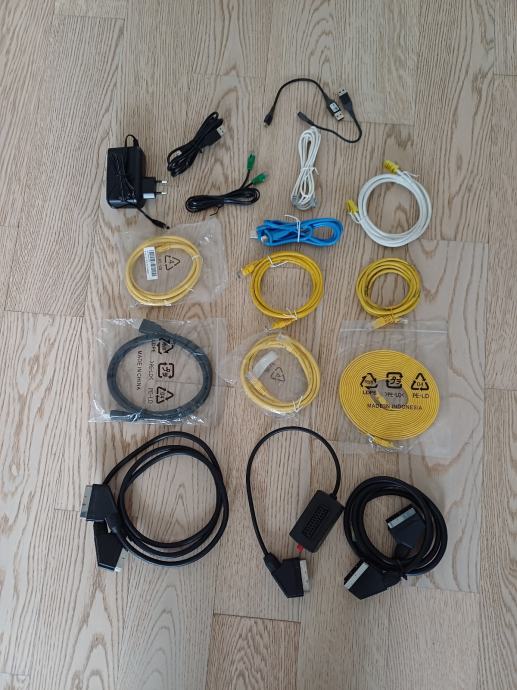Kablovi 23 kom.: scart, utp, hdmi, adapter, autopunjač. Čitati!