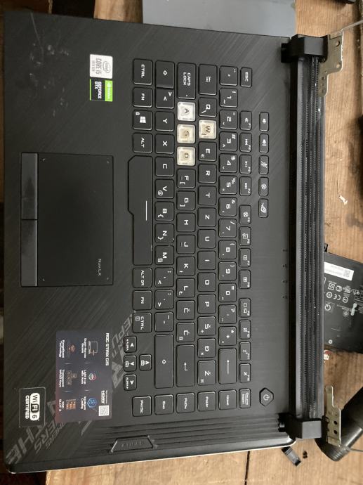 Gornje kućište za Asus ROG Strix G512 G15 s RGB tipkovnicom i svim funkcionalnim flat kablićima + šarke, postoji samo blaga ogrebotina s lijeve strane na palm restu