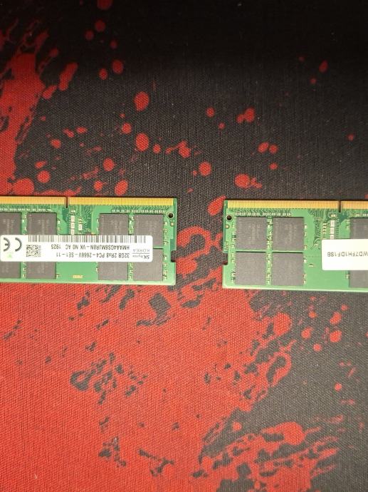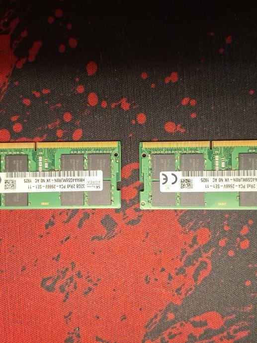 Prodajem 2 sticka memorije za prijenosna računala, ddr4 2666mhz 32gb po sticku, marka SK-hynix, potpuno funkcionalni.