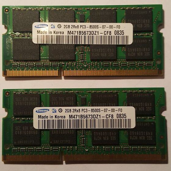 2x2GB(4GB) Samsung M471B5673DZ1-CF8 PC3-8500S 1066mhz DDr3 SODIMM