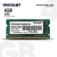 4GB PATRIOT PSD34G160081S PC3-12800 CL11 1600mhz DDR3 SODIMM