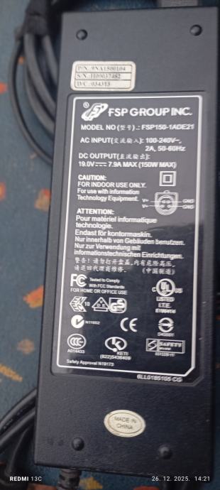 DC izlaz: 19.0V, 7.9A MAX (150W MAX)