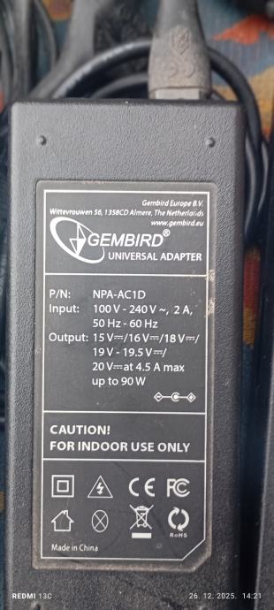 Gembird NPA-AC1D univerzalni 90W AC adapter za prijenosna računala.