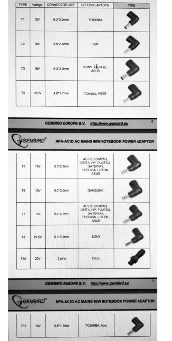 Izlazni napon: 15V/16V/18V/19V/19.5/20V DC.
