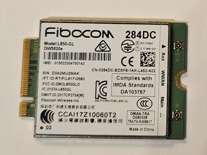 Fibocom L850-GL (Dell DW5820e) 4G LTE Cat9 M.2 Cellular WWAN Module