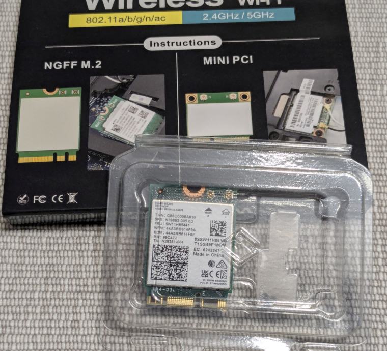 Napomena: Karticu je moguće ugraditi u novije laptope koji imaju NGFF M.2 utor za WiFi kartice. Najlakše je to provjeriti tako da provjerite koju karticu trenutno imate i proguglate ju. U pravilu, laptopi proizvedeni u zadnjih 7-8 godina imaju taj utor. Kartica je kompatibilna SAMO s laptopima koji imaju Intel procesor, a također podržava samo Windows 10 i 11, ne i starije operativne sustave.