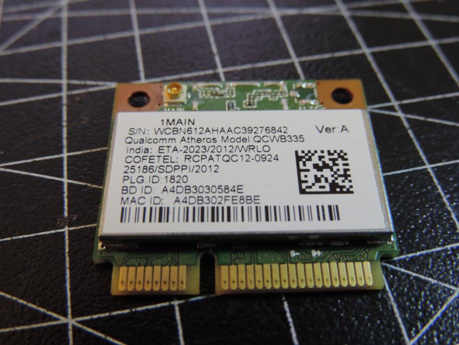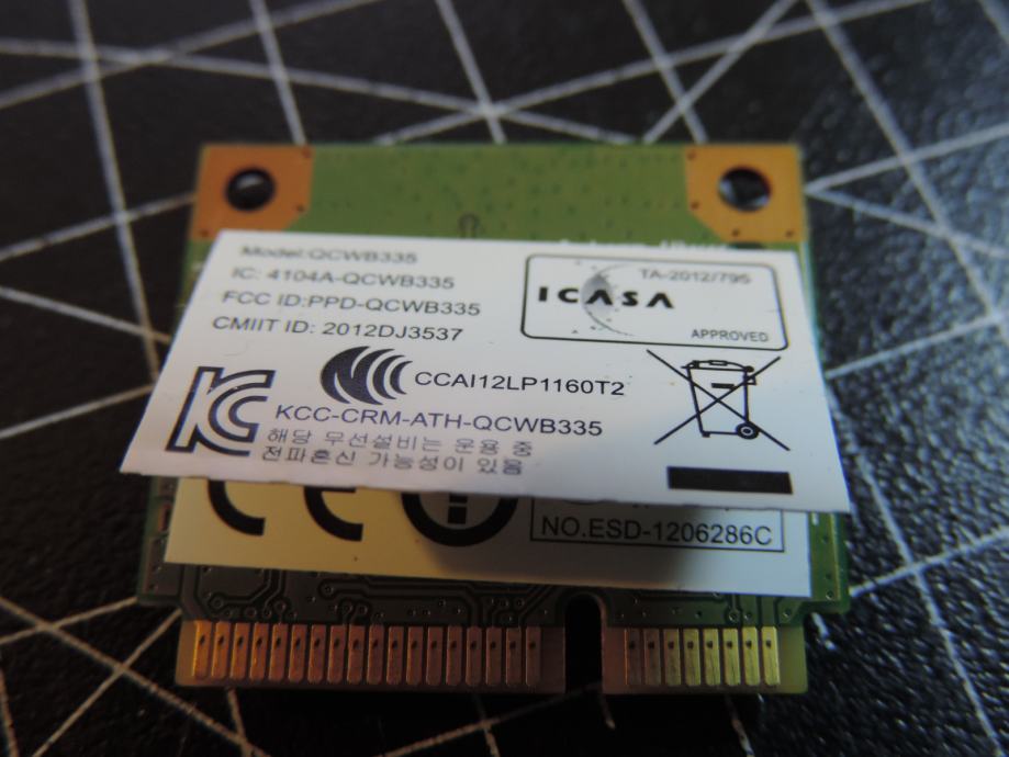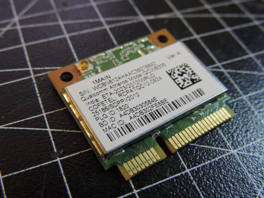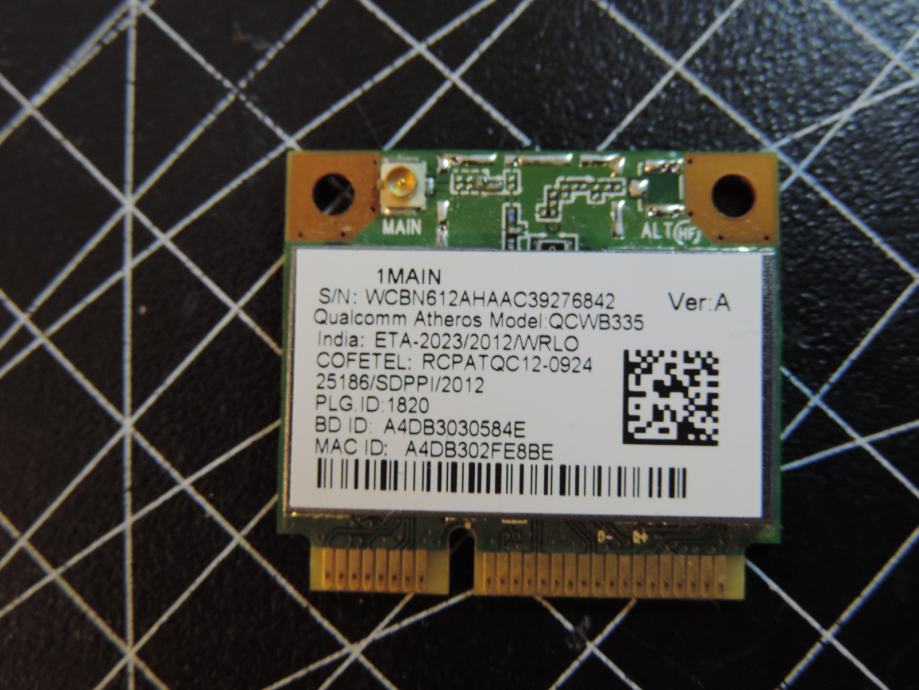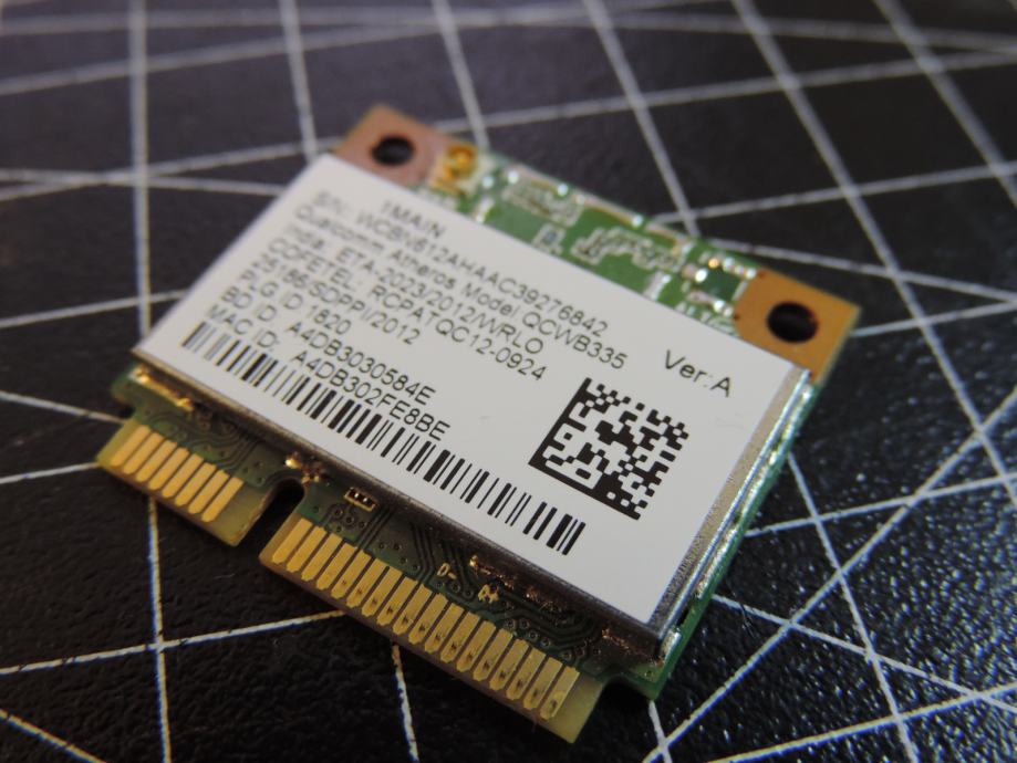 Na prodaja WIFI Half MIni PCIe kartica ATHEROS QCWB335 izvađena iz jednog ACER laptopa koji je rastavljen za prodaju u dijelovima. Testirana, radi savršeno i sa garancijom. Priključak za antenu savršen i bez problema kao i slot 1/2 MINI PCIe koji je bez ogrebotina ili izgubljenih kontakta.