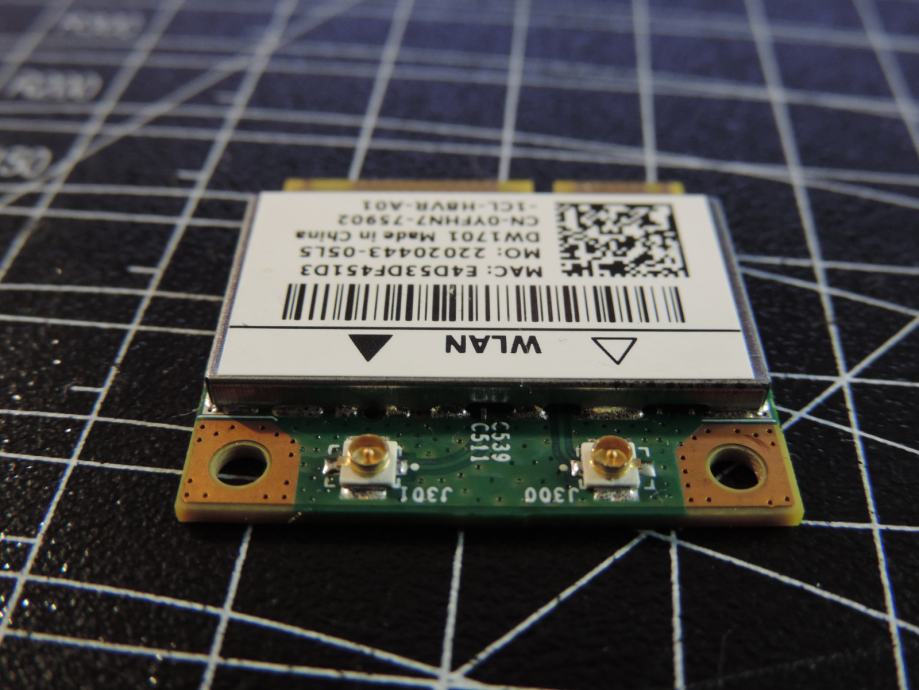 Na prodaja WIFI + Bluetooth Half MIni PCIe kartica BROADCOM BCM94313HMGB original DELL, model DW1701, izvađena iz jednog INSPIRON 15R koji je rastavljen za prodaju u dijelovima. Testirana, radi savršeno i sa garancijom. Priključci za antene savršeni i bez problema kao i slot 1/2 MINI PCIe koji je bez ogrebotina ili izgubljenih kontakta.