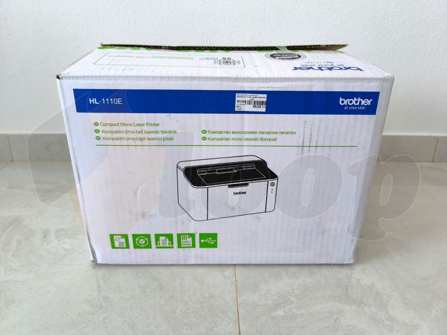 iznimno očuvan kompaktni crno-bijeli laserski printer Brother HL-1110E, s računom i pismenom garancijom do 10.04.2026. godine.