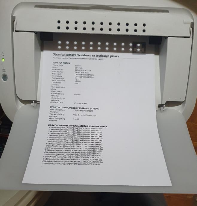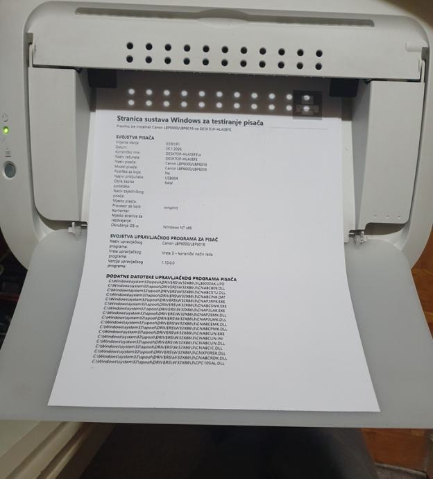 Printer mi radi na Win 10 ali sam uzeo u boji, na LBP6000 sam stavio novi toner 26.01.2026 i sve isprobao.